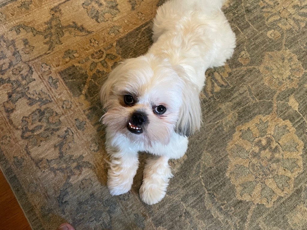 We were blessed to find a Shih tzu-Lhasa-apso mix! Rex came into our lives in March and is inching toward his one year birthday.